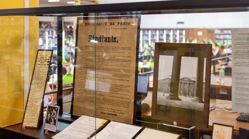 L’exposition en salle met en valeur des documents originaux, des fac-similés conçus par Maeli Desenclos, chargée de conservation au sein de la bibliothèque Cujas, et des objets prêtés (toque, médailles, fausse carte d’identité, etc.) qui viennent composer un récit au cœur de la bibliothèque.