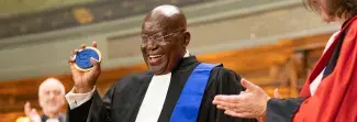 Nana Akufo-Addo est, dans tous les sens du terme, un homme de droit. Autrefois avocat des droits de l’Homme réputé pour son sens de la diplomatie, il est le fondateur et le premier président du Comité ghanéen des droits de l'homme et des peuples, le fer de lance de la reconquête démocratique en Afrique de l’Ouest et le huitième président de la République du Ghana. En reconnaissance de son engagement pour l’avènement d’une culture de paix, de justice et d’égalité, en témoigne notamment l’initiative gouvernementale FreeSHS pour l’accès à l’éducation, le président Akufo-Addo s’est vu remettre le titre de docteur honoris causa par la présidente de l’université, Christine Neau-Leduc : « un honneur incommensurable », a-t-elle affirmé dans le Grand amphithéâtre de la Sorbonne