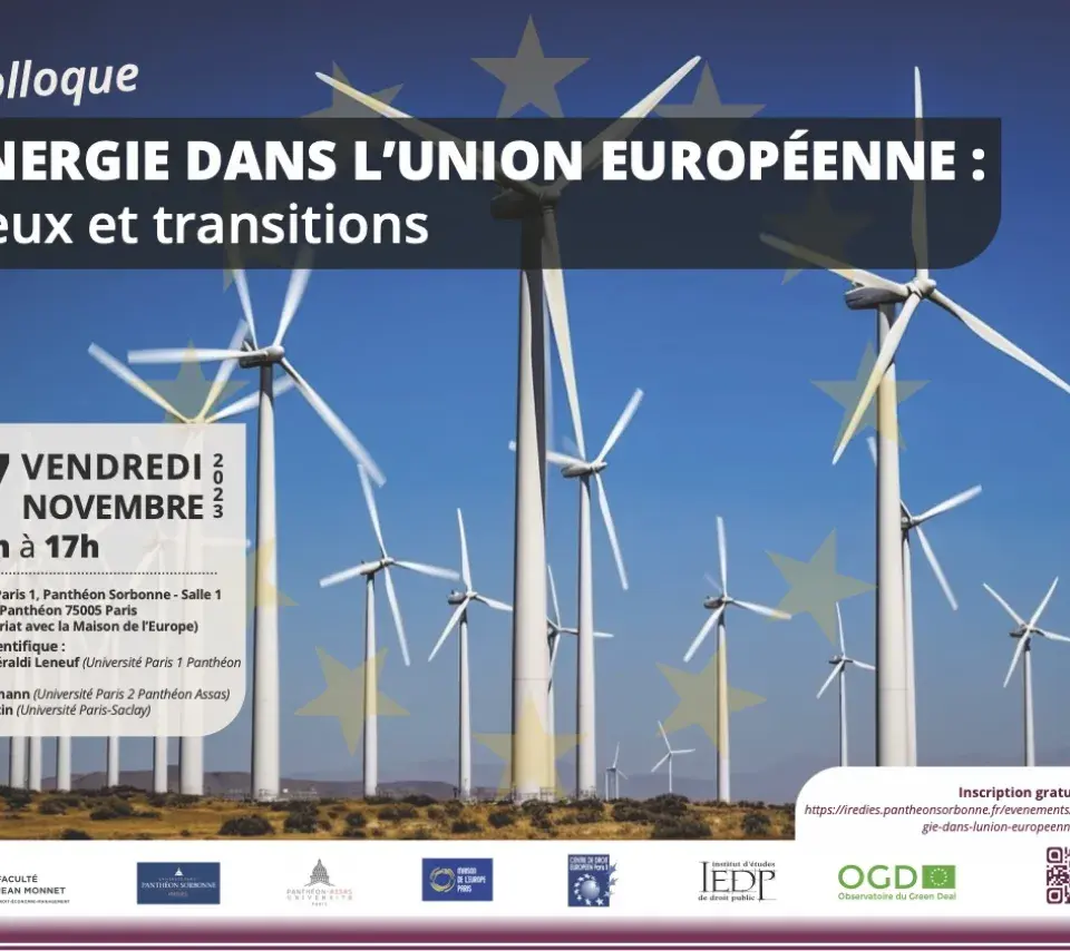 Colloque Image de couverture Le vendredi 17 novembre 2023 09h00 17h00 Colloque : L'énergie dans l'Union européenne : enjeux et transitions Ajouter à mon calendrier